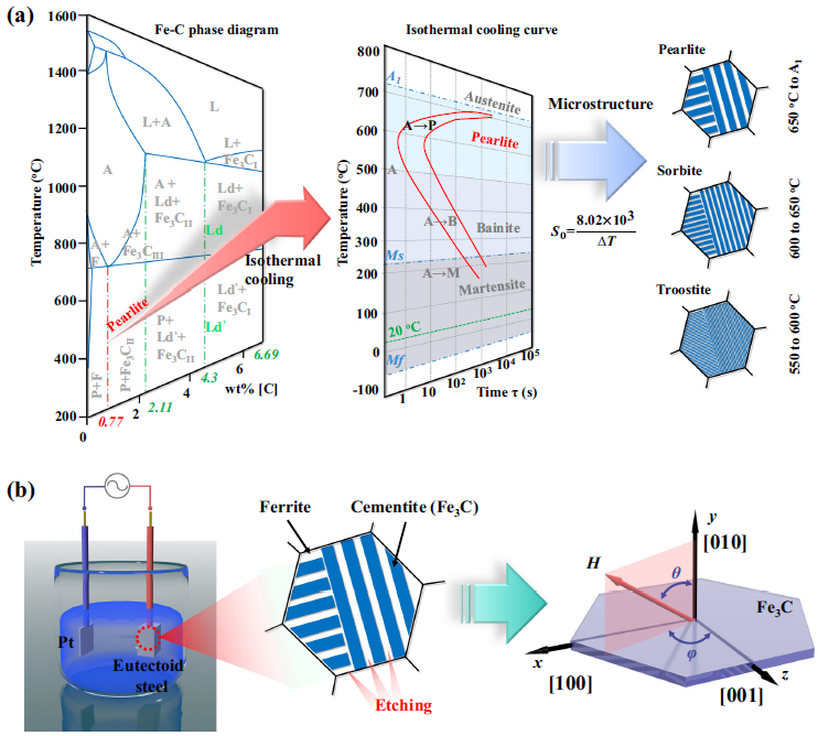 近日,Nature Communications在线刊登了我校材料与环境工程学院张雪峰教授团队的研究论文“Highly anisotropic Fe3C microflakes constructed by solid-state phase transformation for efficient microwave absorption”。该工作利用电化学腐蚀去合金化方法从传统共析钢中获得了磁性Fe3C微米片,通过控制等温淬火温度诱导固态相变调控磁性Fe3C微米片的各向异性,并展现出了优异的吸波性能,实现了传统结构材料的功能化应用。