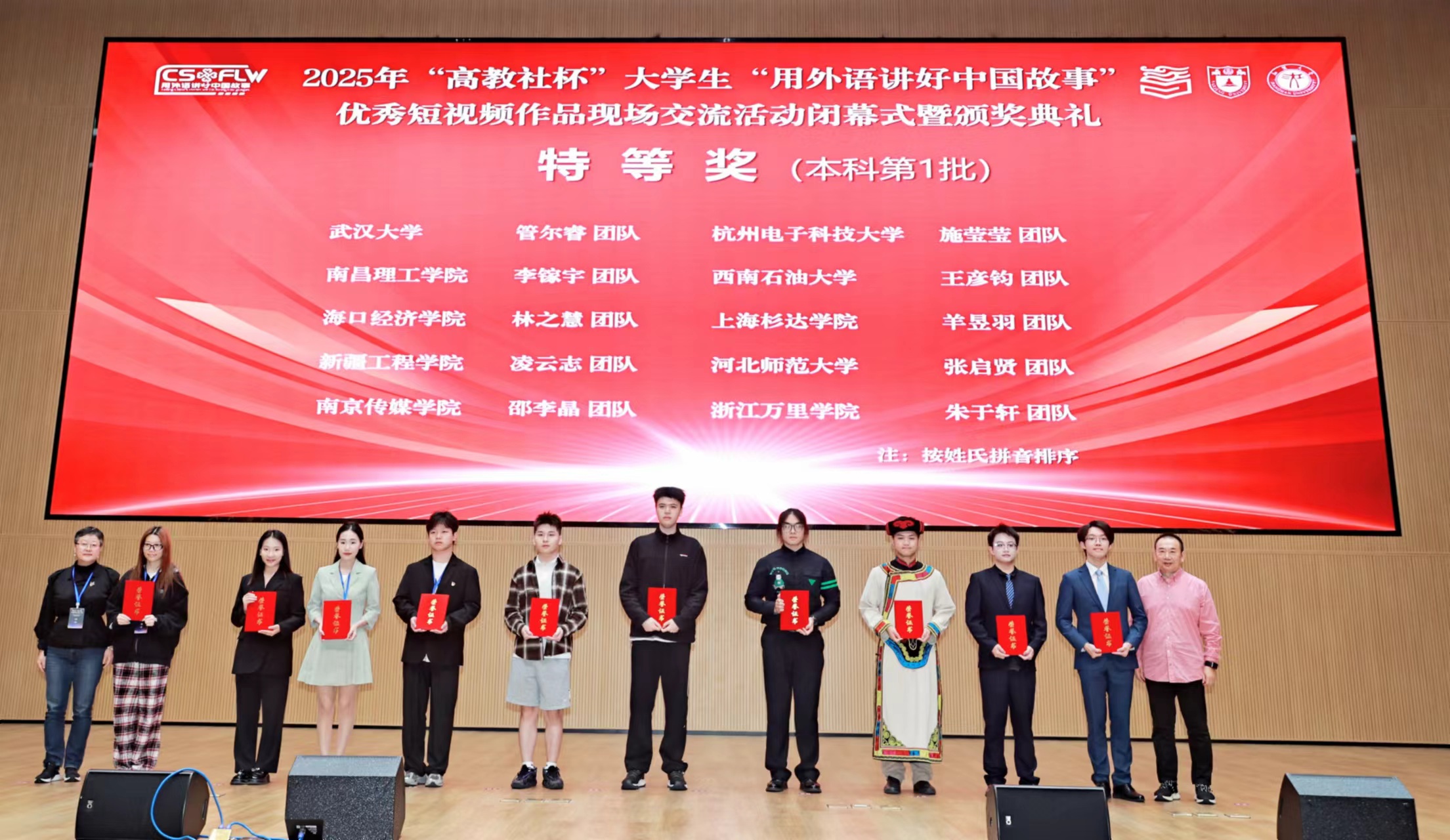9月21日,2025年“高教社杯”大学生“用外语讲好中国故事”优秀短视频作品现场交流活动在武汉落下帷幕。久久精品一区二区学生团队携作品《不畏群山碍》(Beyond the Mountains)经过校赛、省赛、国赛的层层选拔,从全国1093所高校的6915件短视频作品中脱颖而出,入围全国总决赛现场展示汇报赛段,最终与中国人民大学、武汉大学、哈尔滨工业大学等118所高校同台竞技,斩获本科组全国特等奖,指导教师任利获优秀指导教师奖。